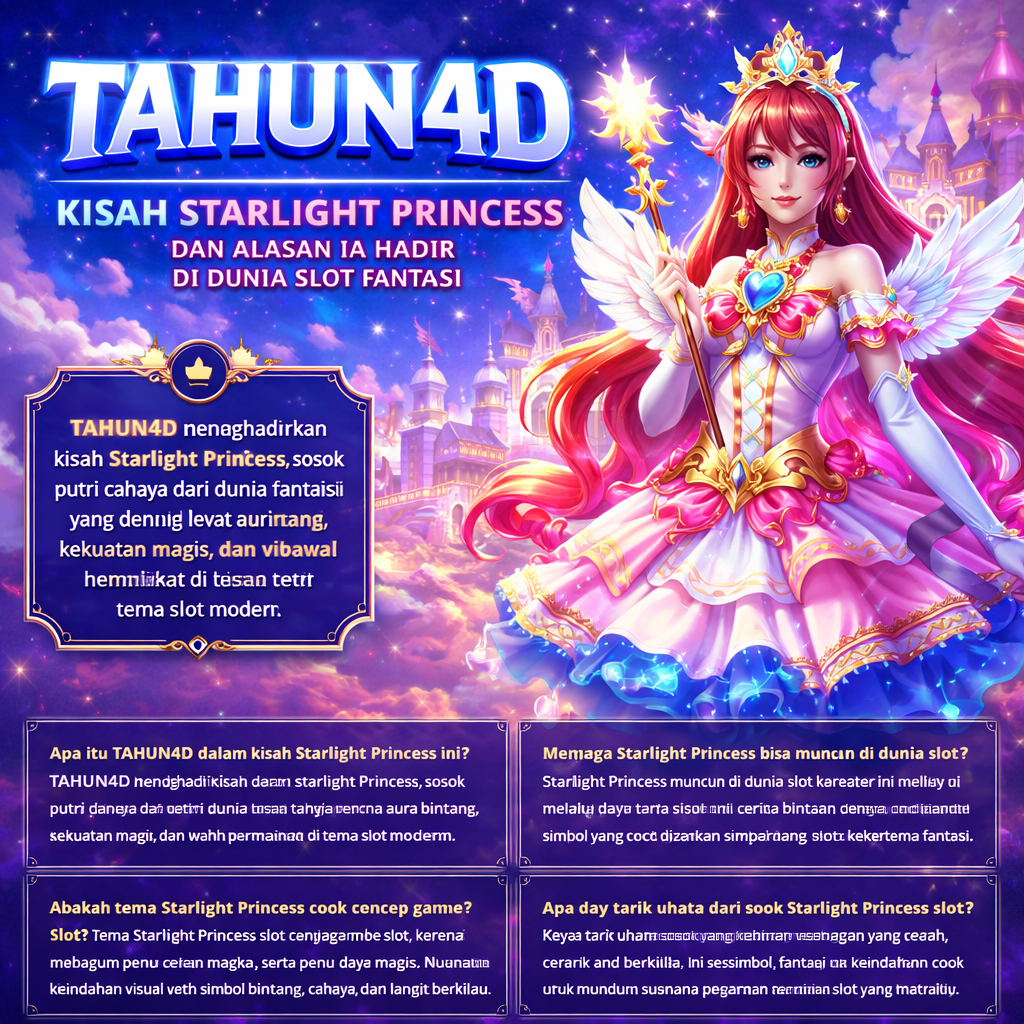 Melalui TAHUN4D, kisah Starlight Princess bisa dibawa sebagai cerita fantasi yang memadukan keindahan, kekuatan, dan daya tarik visual dalam satu konsep. Kehadirannya di game slot bukan karena kebetulan, melainkan karena sosok ini memang memiliki unsur cerita, simbol, dan tampilan yang sangat kuat untuk membangun tema yang lebih berkarakter dan mudah diingat.